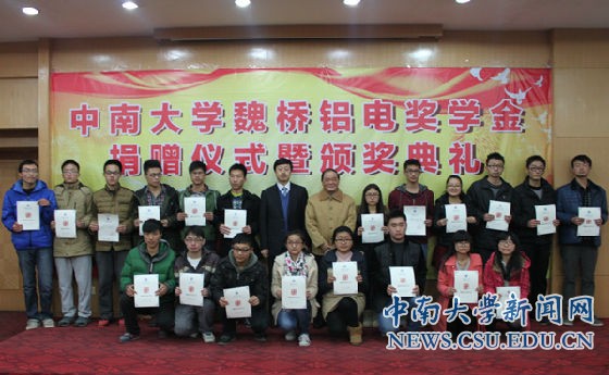 捐赠仪式上,徐建军和杨丛森共同签署了《中南大学魏桥铝电奖学金捐赠协议书》。捐赠协议规定,山东魏桥铝电有限公司自2014年至2024年,每年捐资50万元,共计500万元人民币,用于在中南大学设立“魏桥铝电奖学金”。