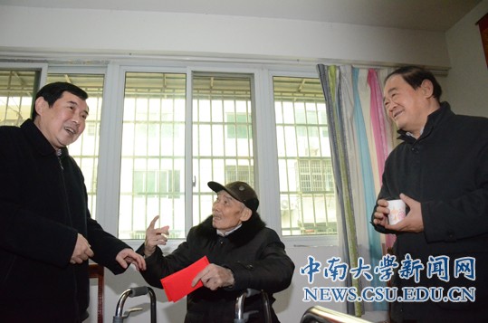 慰问的最后一站是校本部。在原中南工业大学党委书记汪诗训家中,高文兵、徐建军等看望了汪老和正在病中的汪老夫人。高书记说:“现在医疗条件好了,若身体不适,你们要及时到医院检查、治疗,有什么需要我们帮忙的,只管吩咐。”看着精神矍铄的汪老,高书记诚恳地说:“过去,你们为学校的发展奉献了青春和热血,现在,最重要的是养好身体,与我们一起分享学校发展的喜悦和幸福。”汪老表示,非常感谢学校对老同志们的关心和爱护,更高兴看到学校又好又快的发展现状和趋势,祝愿中南大学越来越好。