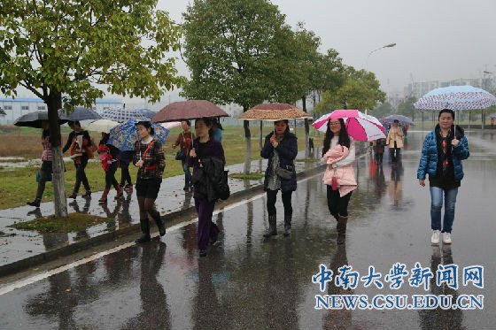 本网讯 3月15日上午10点,春雨酣畅。新校区体育场旁,随着一声发令枪响,千余名女教职工涌出起点,开始环校健步走活动。